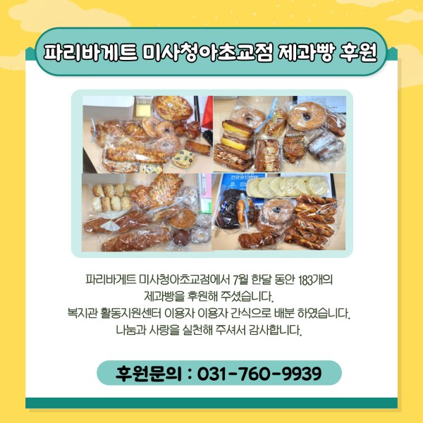 후원내역 파리바게트 미사청아초교점 제과빵 후원