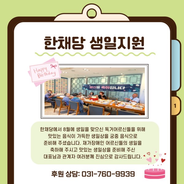 후원내역 한채당 재가어르신 생일지원사업 후원