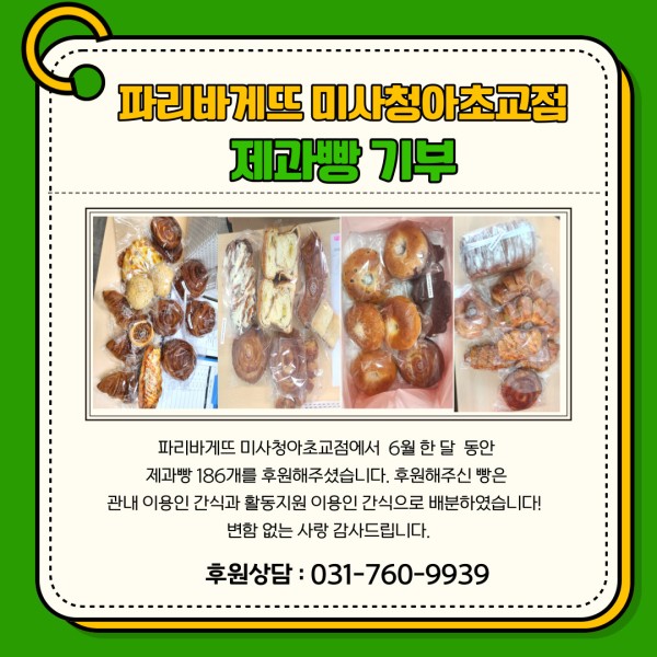 후원내역 파리바게뜨 미사청아초교점-제과빵 후원