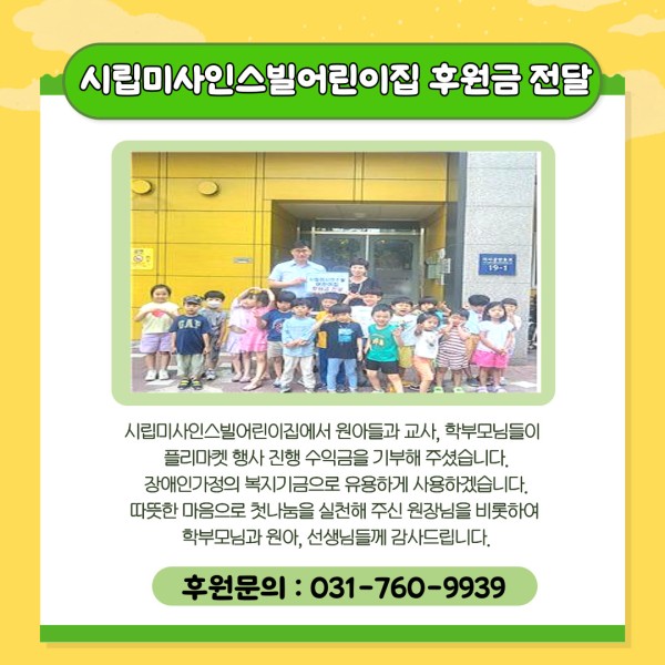 후원내역 시립미사인스빌어린이집 후원금 전달