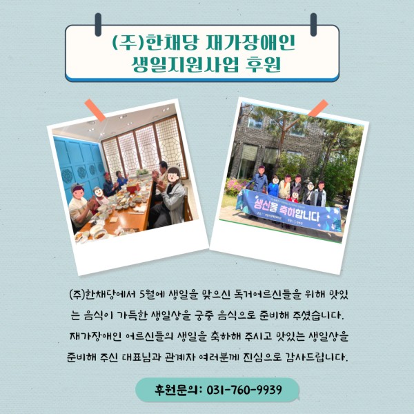 (주)한채당에서 5월에 생일을 맞으신 독거어르신들을 위해 맛있