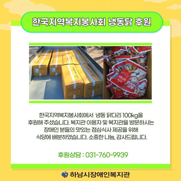 한국지역복지봉사회에서 냉동 닭다리 100kg을