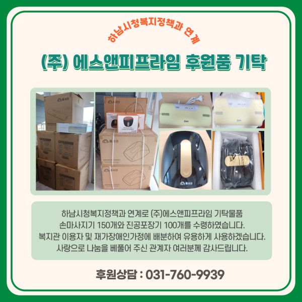 하남시청복지정책과 연계로 (주)에스앤피프라임 기탁물품