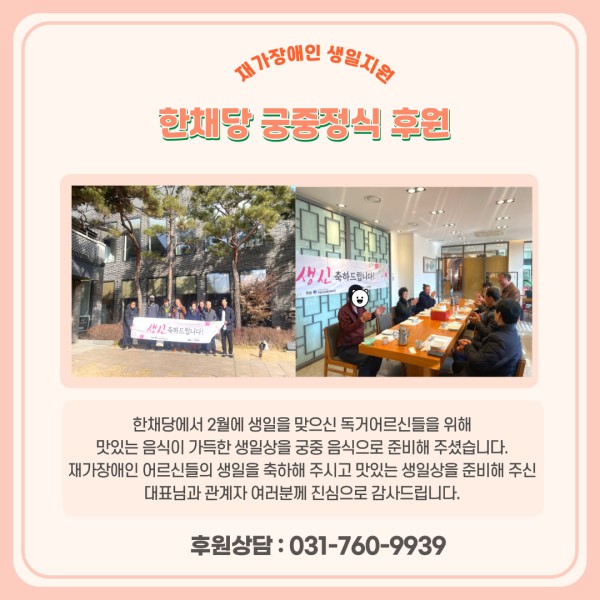 한채당에서 2월에 생일을 맞으신 독거어르신들을 위해