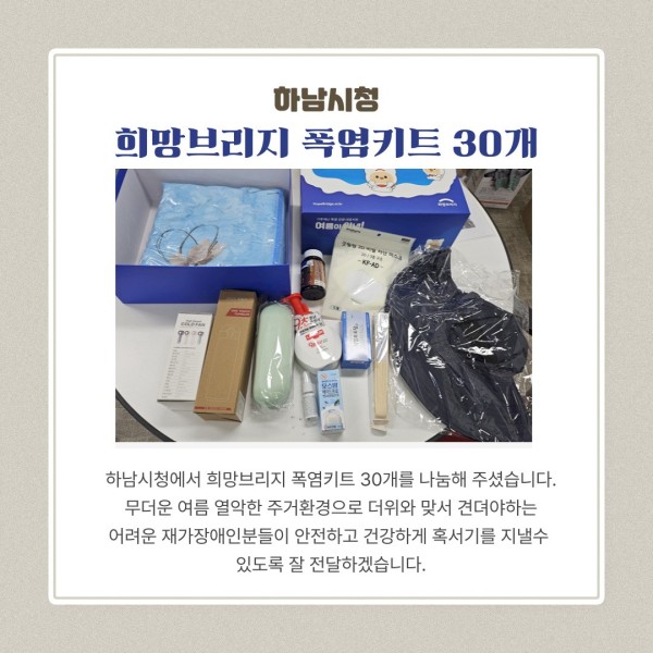 하남시청에서 희망브리지 폭염키트 30개를 나눔해 주셨습니다.