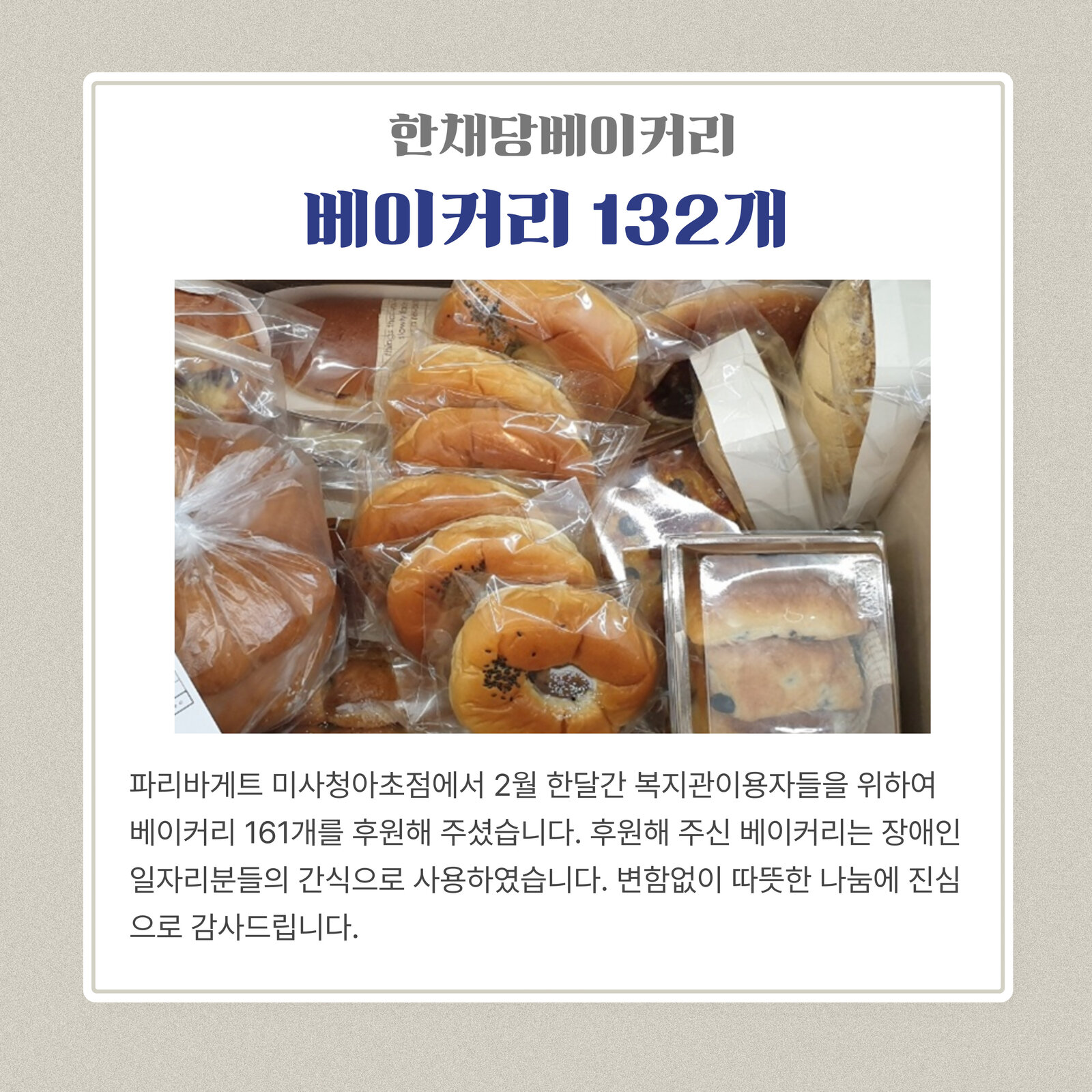베이커리 161개를 후원해 주셨습니다. 후원해 주신 베이커리는 장애인