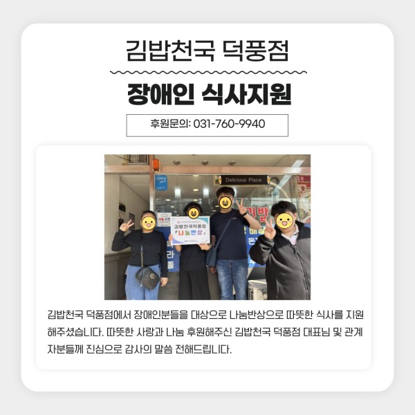후원내역 김밥천국 덕풍점 장애인 외식지원