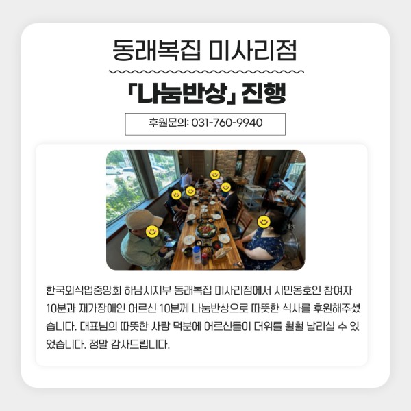 후원내역 동래복집 미사리점 「나눔반상」 진행