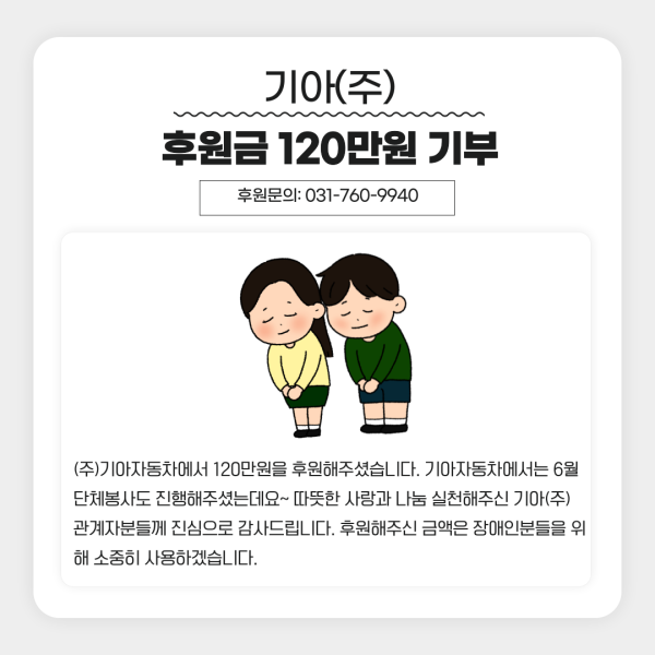(주)기아자동차에서 120만원을 후원해주셨습니다. 기아자동차에서는 6월