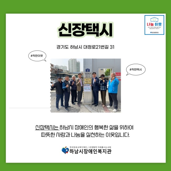 나눔이웃 신장택시 페이지 정보 작성자 관리자 작성일24-06-12 11:53 조회수95 본문 ● 신장택시경기도 하남시 대청로 21번길 31● 나눔 관련 소식 목록 이전글 미사리남원추어탕 본점 24.06.12 다음글 동래복집 미사리점 24.06.12