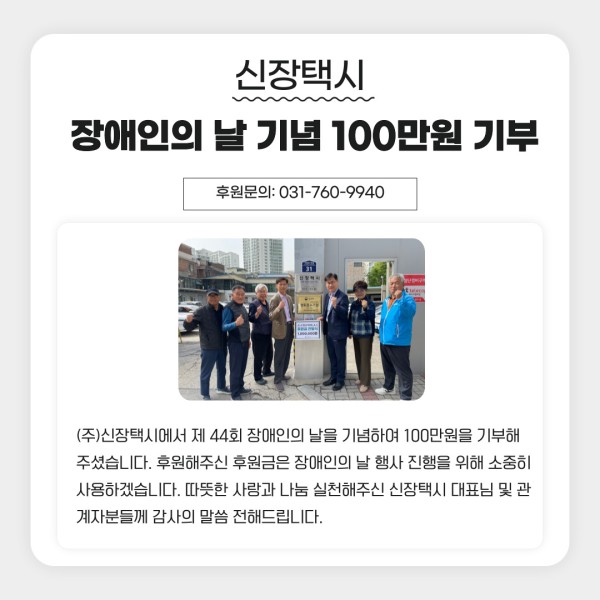 후원내역 (주)신장택시 제 44회 장애인의 날 기념 100만원 기부