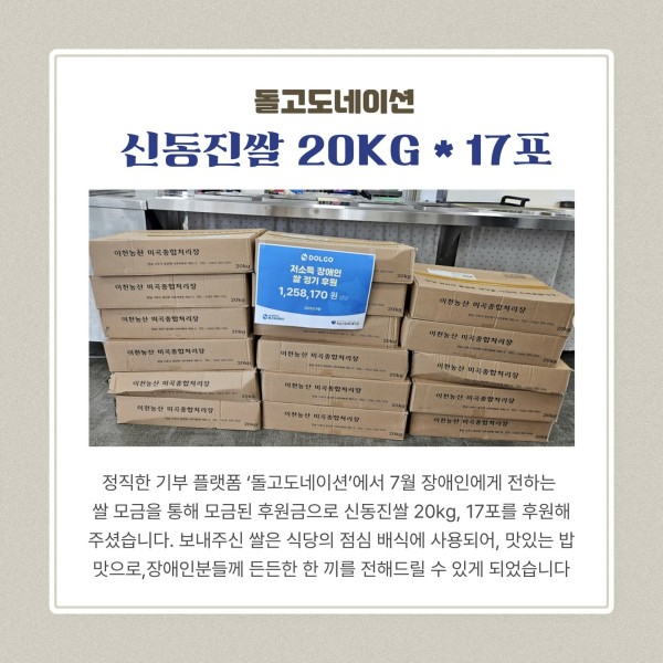 정직한 기부 플랫폼 ‘돌고도네이션’에서 7월 장애인에게 전하는 쌀 모금을 통해
