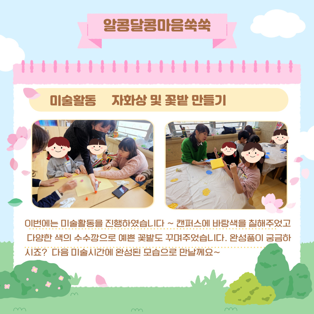 미술, 체육, 외부활동 프로그램이 진행될 예정입니다.