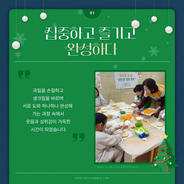 부드러운 생크림과 신선한 과일을 듬뿍 올려 나만의 케이크를 직접 만들어보는 휴일 특별 프로그램을 진행했습니다.