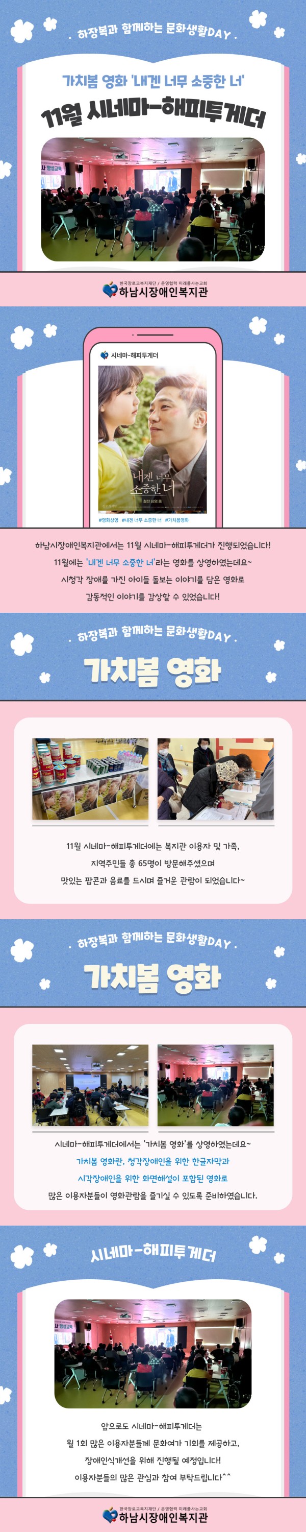 하남시장애인복지관에서는 11월 시네마-해피투게더가 진행되었습니다!