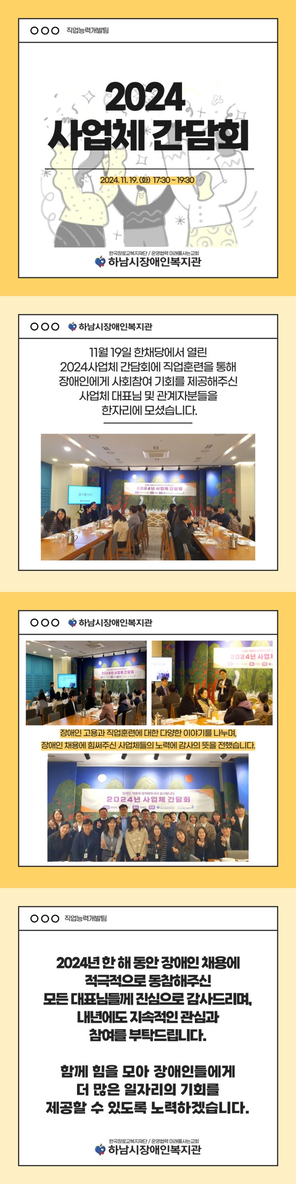 11월 19일 한채당에서 열린 2024년 사업체 간담회에 직업훈련을 통해 장애인에게