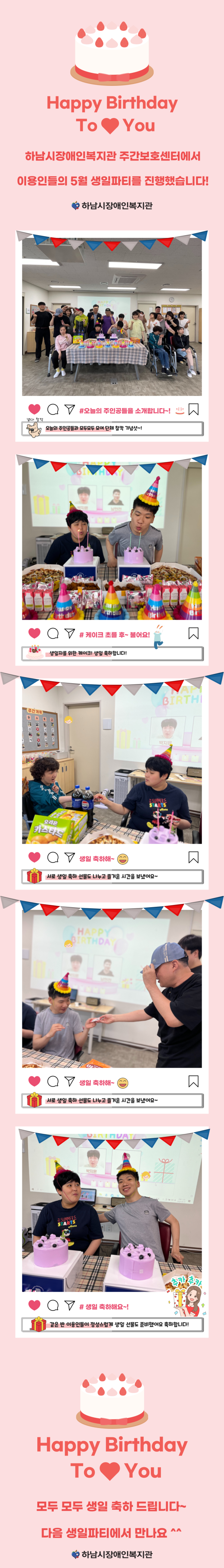하남시장애인복지관 주간보호센터에서 이용인들의 5월 생일파티를 진행했습니다!
