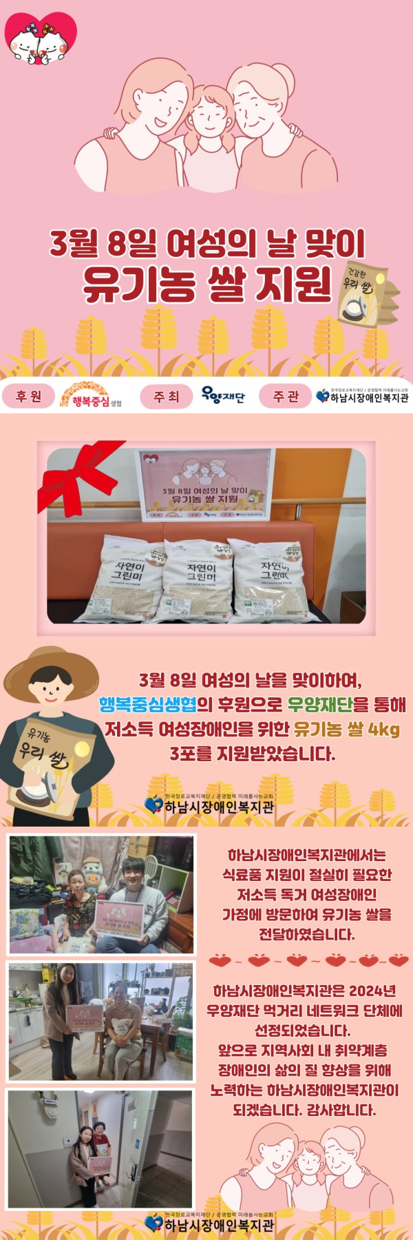 지역사회개발 [지역사회] 2024년 우양재단 먹거리네트워크사업 [3월 / 여성의 날 맞이_유기농 쌀 지원]