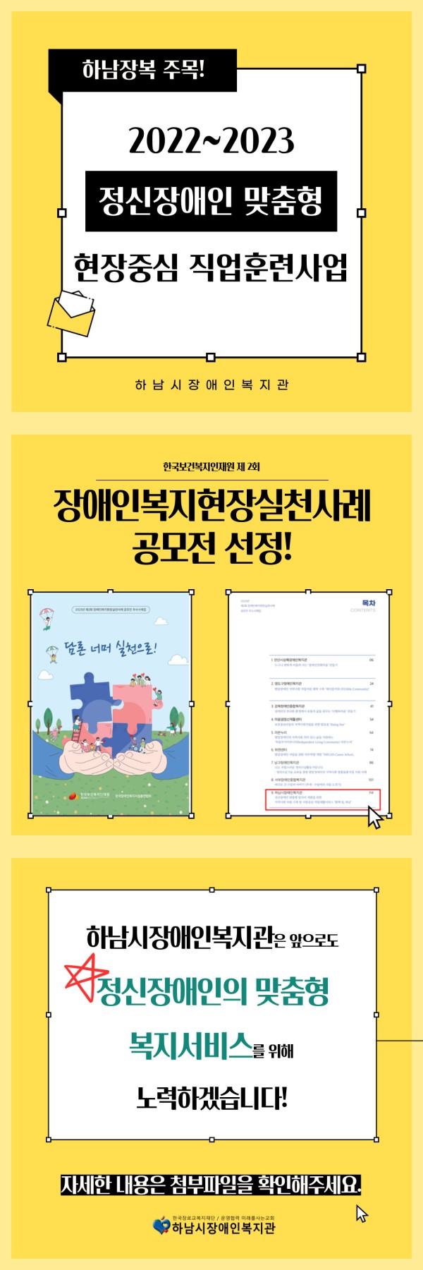 하남시 장애인복지관은 앞으로도 정신장애인의 맞춤형 복지 서비스를 위해 노력하겠습니다!