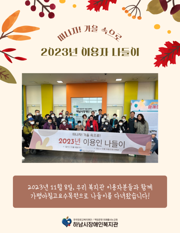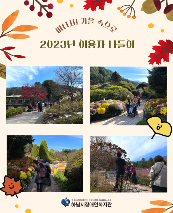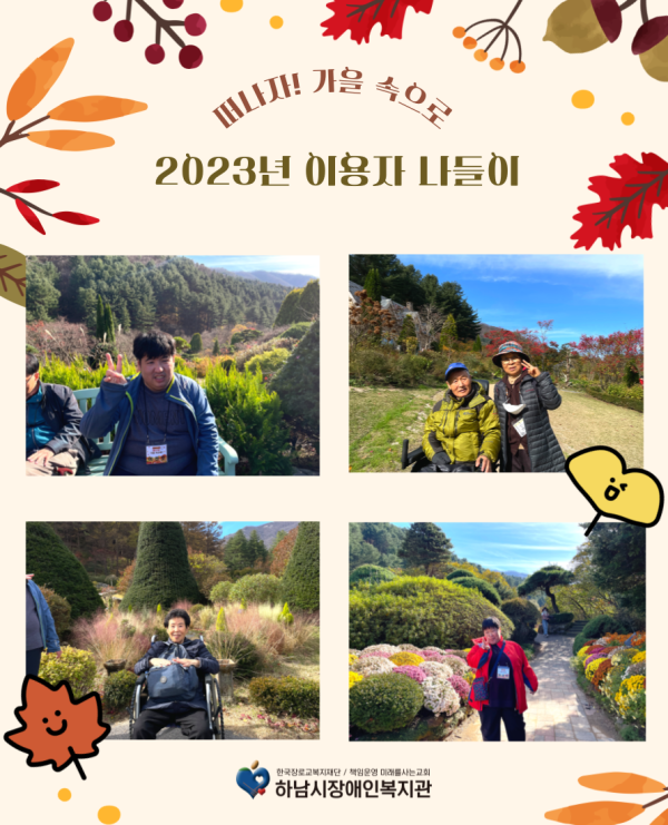 2) 2023년 11월 8일, 우리 복지관 이용자분들과 함께 가평아침고요수목원으로 나들이를 다녀왔습니다!