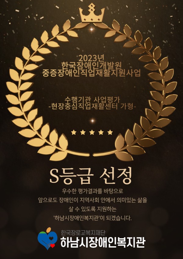 직업능력개발 [직업재활] 2023년 중증장애인직업재활지원사업 수행기관 평가 'S등급' 선정!!