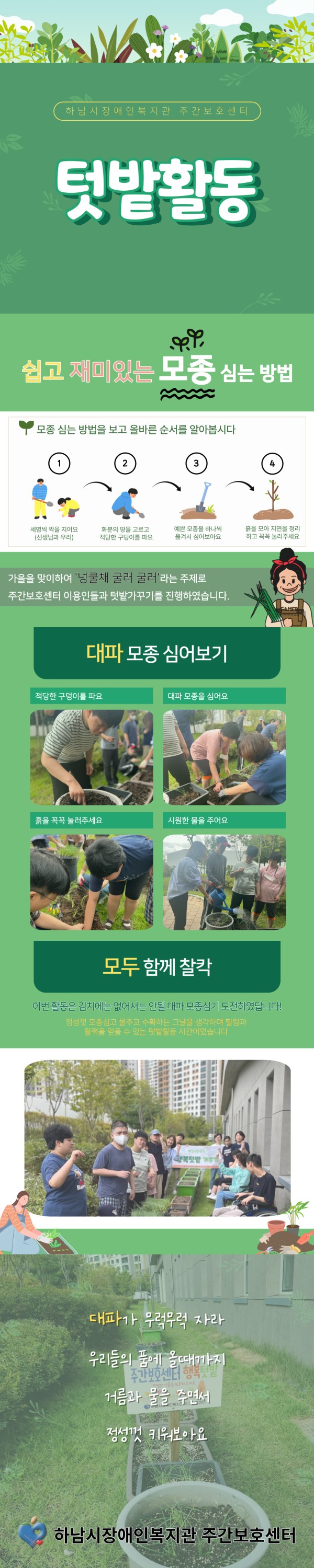 이번 활동은 김치에는 없어서는 안될 대파 모종심기 도전하였답니다!
