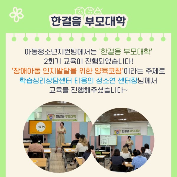 아동청소년지원팀에서는 ‘한걸음 부모대학’ 2회기 교육이 진행되었습니다.