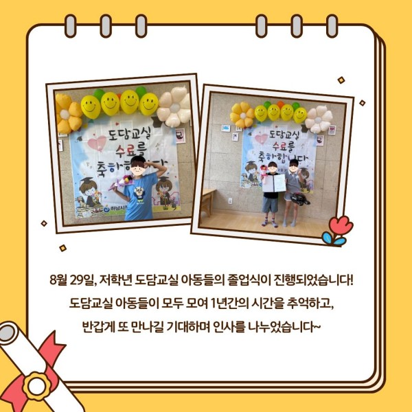 8월 29일, 저학년 도담교실 아동들의 졸업식이 진행되었습니다!