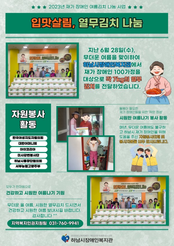 지역사회개발 [지역복지] 2023년 재가 장애인 여름김치 서비스 "입맛살림, 열무김치 나눔" 사업 진행