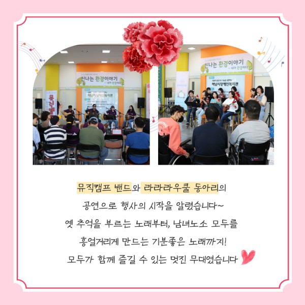 뮤직캠프 밴드 와 라라라 우클 동아리의 공연으로 행사의 시작을 알렸습니다.