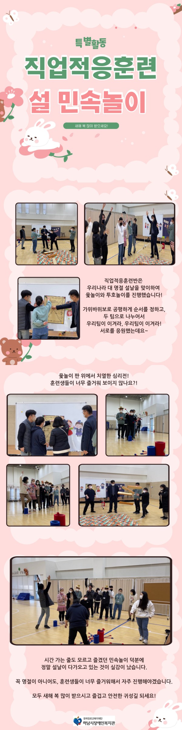 직업능력개발 직업적응훈련 특별활동 설 명절 민속놀이