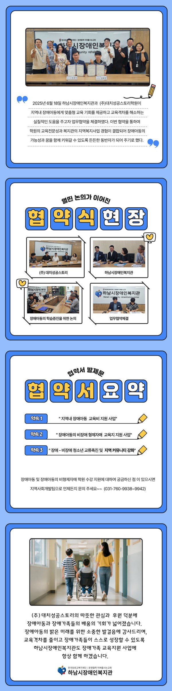 하남시장애인복지관과 (주)대치성공스토리학원이