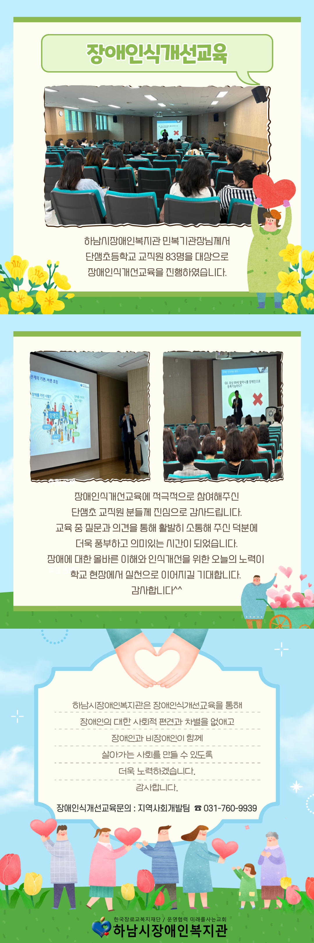 장애인식개선교육문의 : 지역사회개발팀 ☎ 031-760-9939