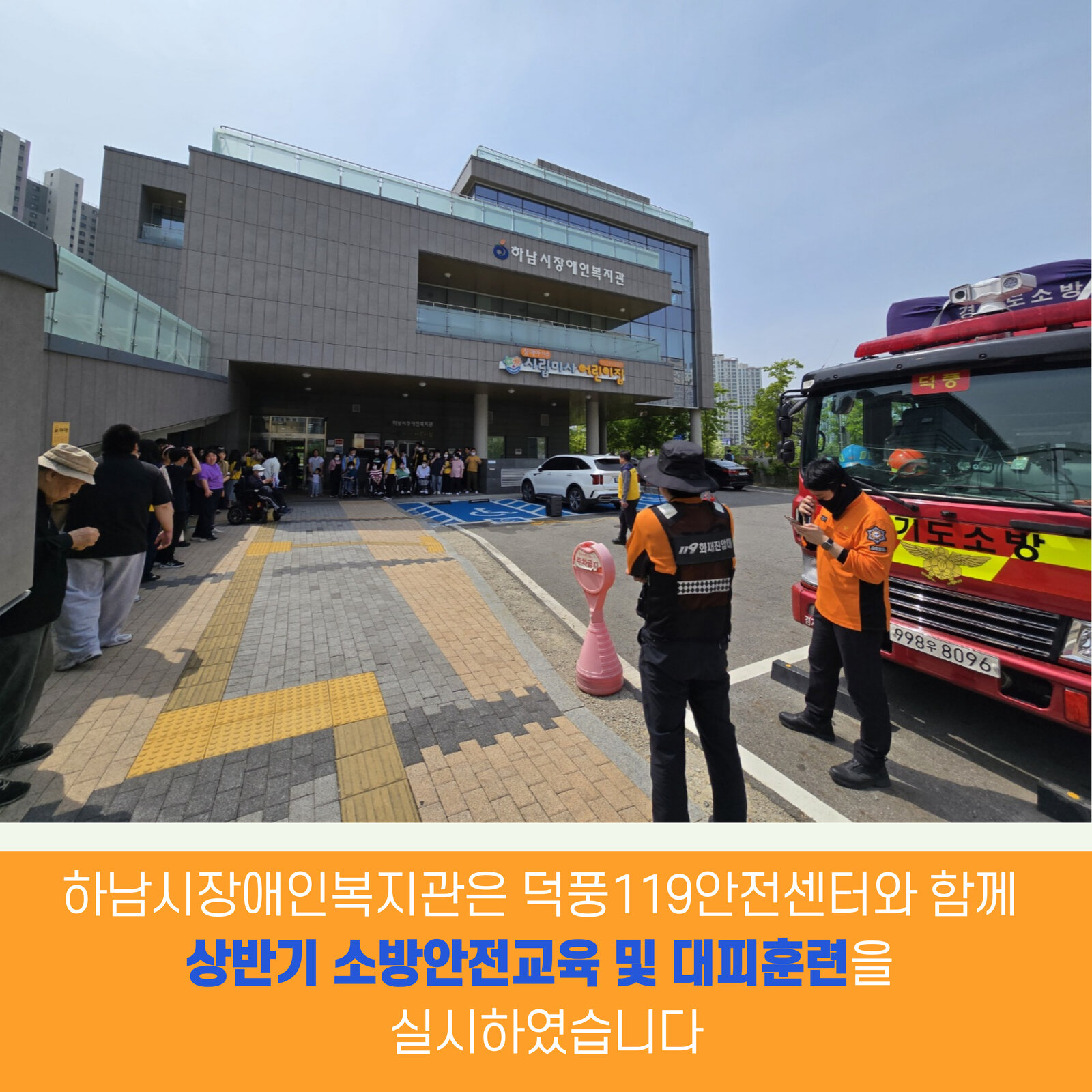 하남시장애인복지관은 덕풍119안전센터와 함께 상반기 소방안전교육 및 대피훈련을 실시하였습니다.