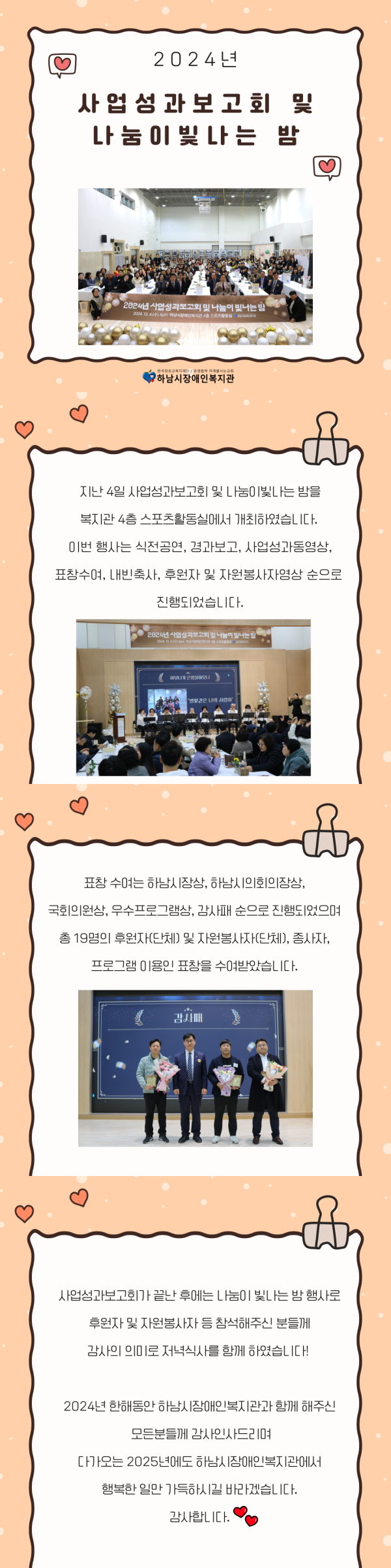 2024년 한해동안 하남시장애인복지관과 함께 해주신 모든분들께 감사인사드리며