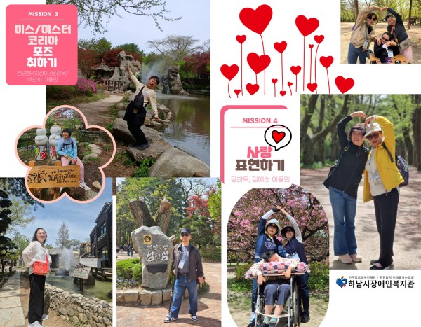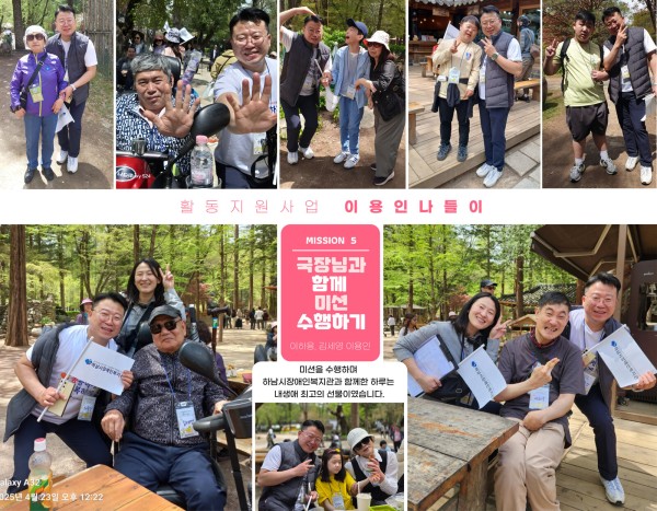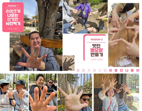 5가지 미션을 주어 이용인과 활동지원사간의 유대감을 형성하고 협동심을 키울수있는 기회를 마련하였습니다.