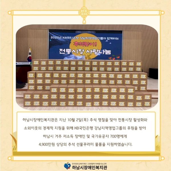 본 추석 선물꾸러미는 하남시장애인복지관과 총 25개의 장애인 유관기관, 그리고