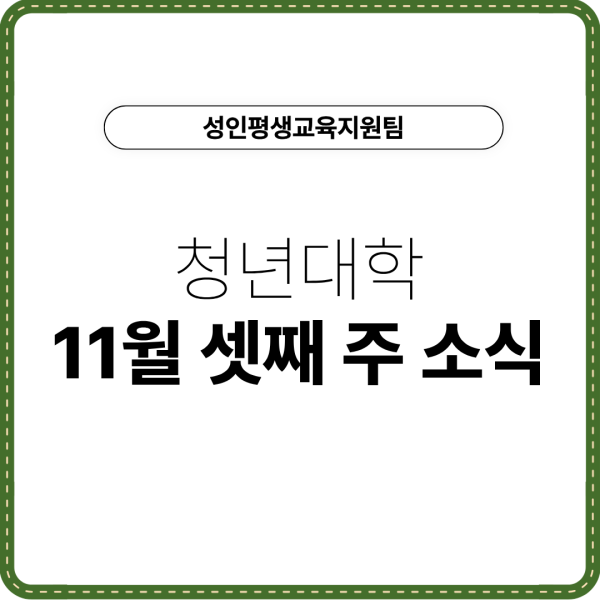 성인평생 [성인평생교육지원팀] 청년대학 11월 셋째 주 소식