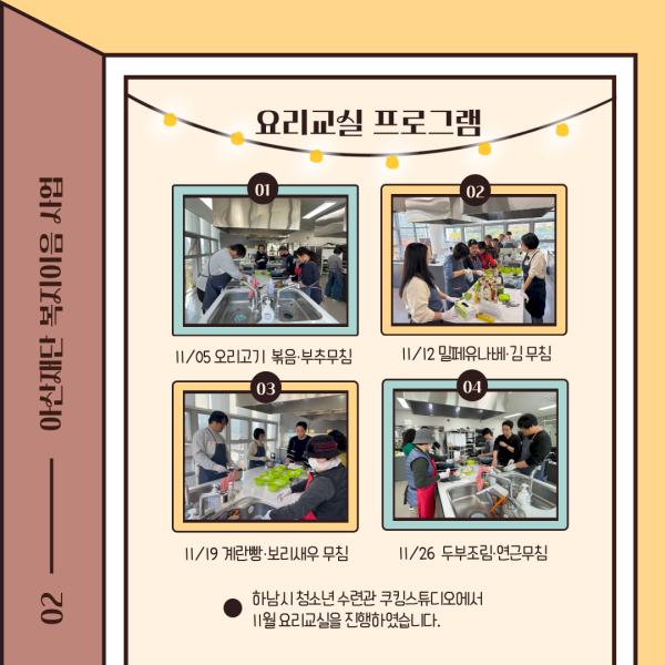 하남시 청소년 수련관 쿠킹스튜디오에서 11월 요리교실을 진행하였습니다.