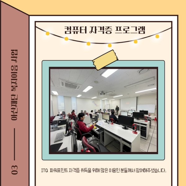 - 11월 컴퓨터 자격증 프로그램 개설 및 운영