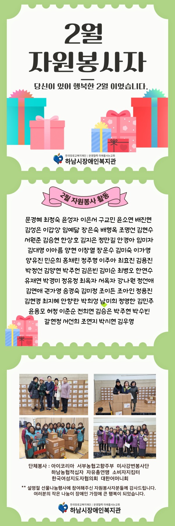 2월 자원봉사자- 당신이 있어 행복한 2월 이였습니다.