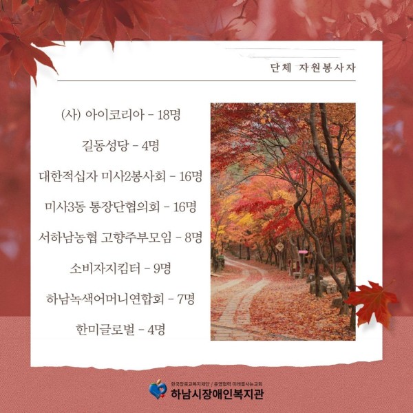 2025년 10월 함께한 자원봉사 개인/단체분들에게 감사의 말씀을 전합니다.