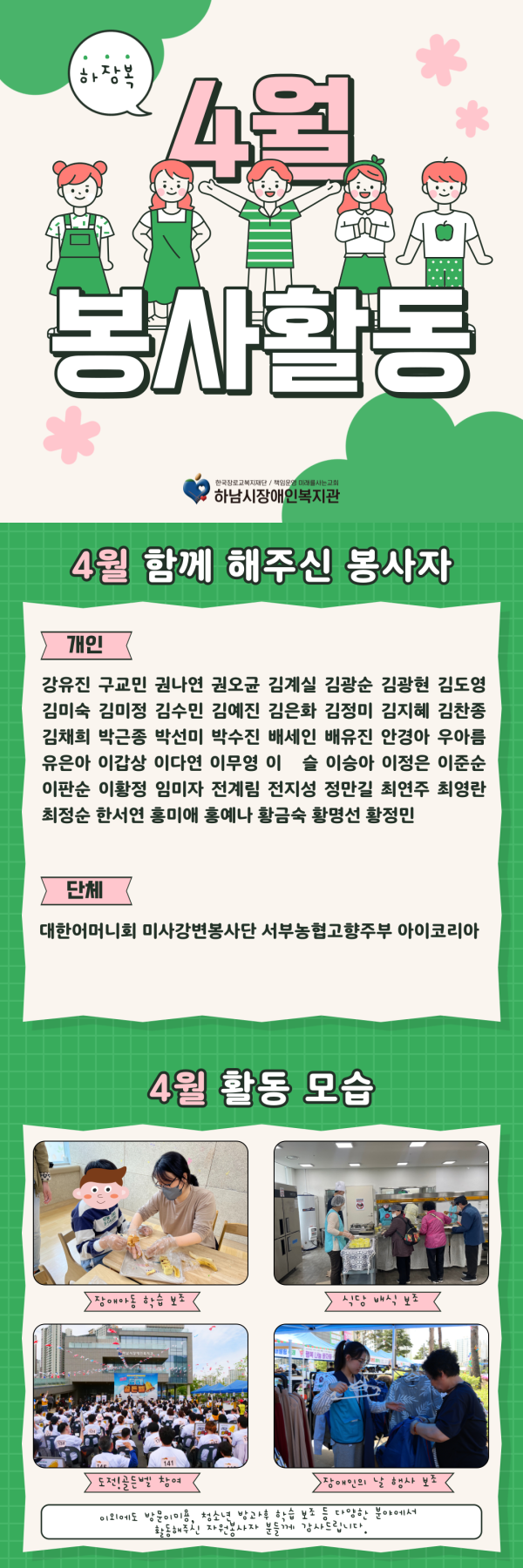 장애아동 학습 보조/식당 배식 보조/도전골든벨 참여/장애인의 날 행사 보조
