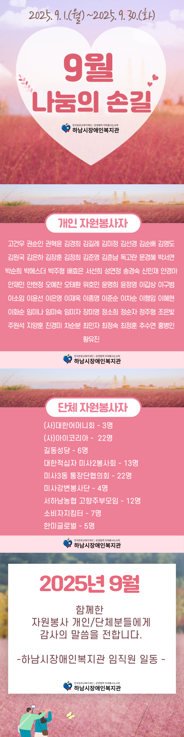 2025년 9월 함께한 자원봉사 개인/단체분들에게 감사의 말씀을 전합니다.