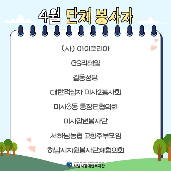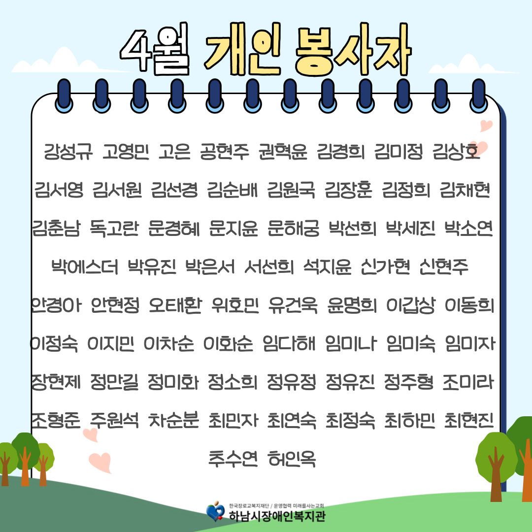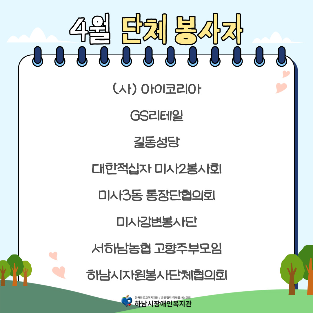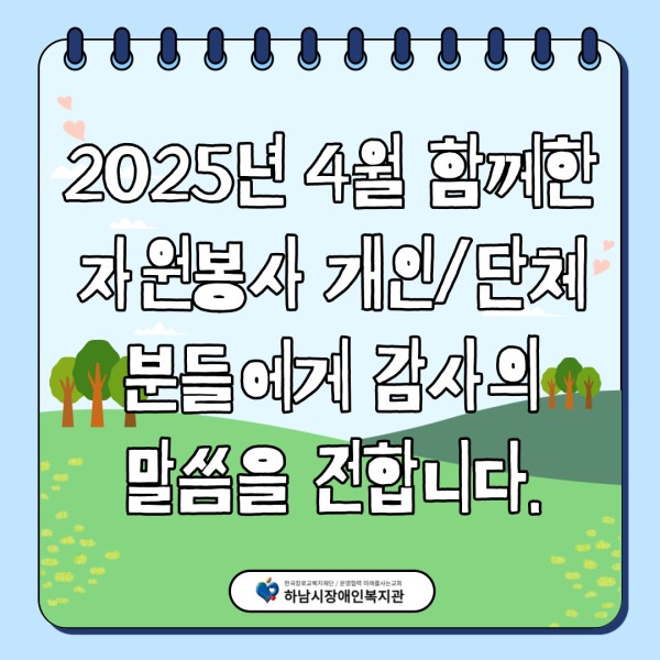 2025년 4월 함께한 자원봉사 개인/단체 분들에게 감사의 말씀을 전합니다.