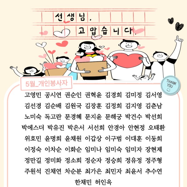 고영민 공시연 권순인 권혁윤 김경희 김미정 김서영 김선경 김순배 김원국 김장훈 김정희 김지영 김춘남 노미숙 독고란 문경혜 문지윤 문해궁 박건수 박선희 박에스더 박유진 박은서 서선희 안경아 안현정 오태환 위호민 윤명희 윤채원 이갑상 이구범 이대훈 이동희 이정숙 이차순 이화순 임미나 임미숙 임미자 장현제 정만길 정미화 정소희 정순자 정승희 정유정 정주형 주원석 진채연 차순분 최가은 최민자 최윤서 추수연 한채민 허인옥